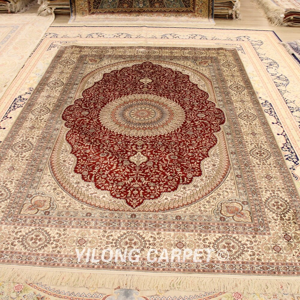 Yilong 6 X9 Red Dining Room Hand Knotted Silk Carpets Medallion