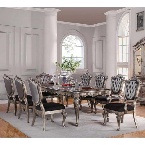 Antique Platinum Rectangular Dining Room Set 9pcs Acme Furniture