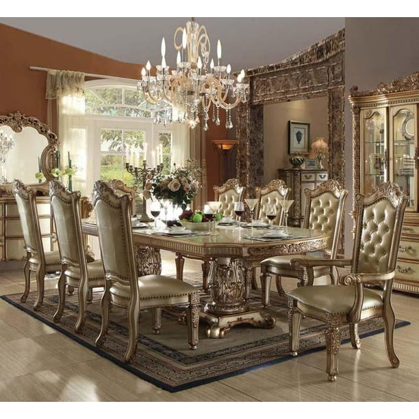 Gold Patina And Bone Double Pedestal Dining Room Set 9pcs Acme