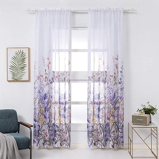 Amazon Com Kotile Floral Sheer Curtains 84 Inch Length Purple