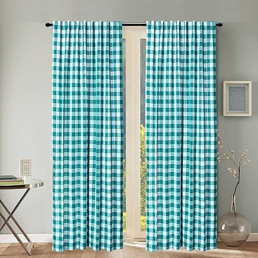 Amazon Com Light Pro Teal Kitchen Curtains Rod Pocket Curtains