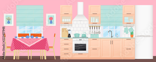 Dining Room Interior Vector Illustration Of Modern Or Retro