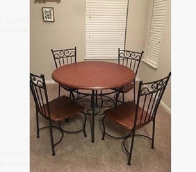 Small Rustic Dining Set Wood Metal 5 Pc Table Chairs Antique Black