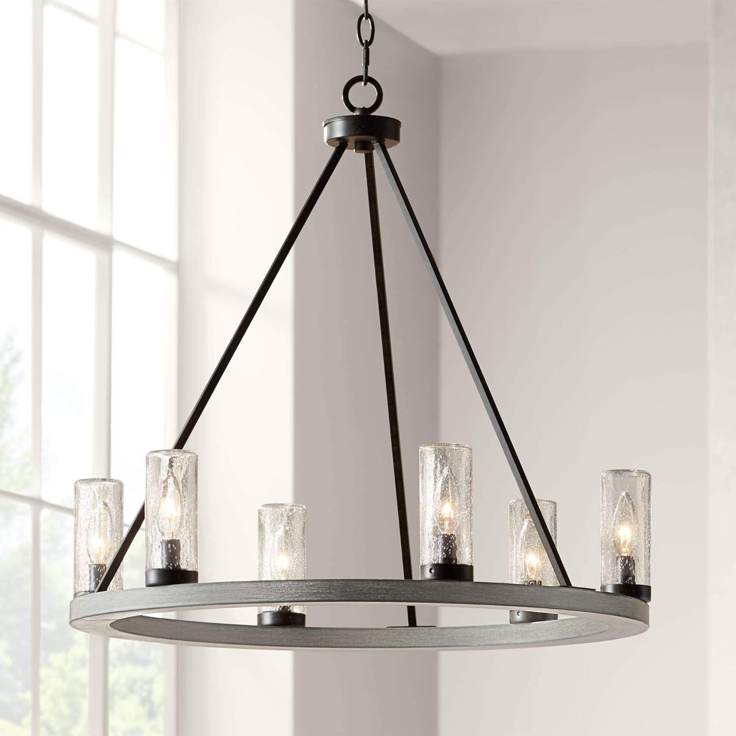 Lillian Gray Wood Bronze Wagon Wheel Chandelier 27 Wide Rustic