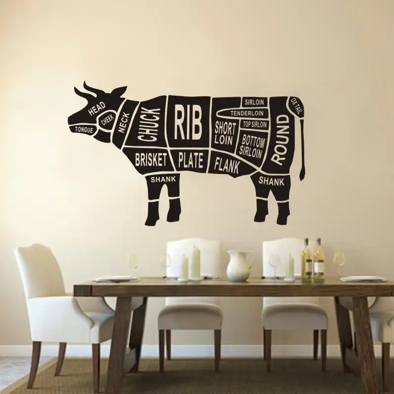 Vinyl Decals Cattle Beef Butcher Wall Sticker Kitchen Dining Room