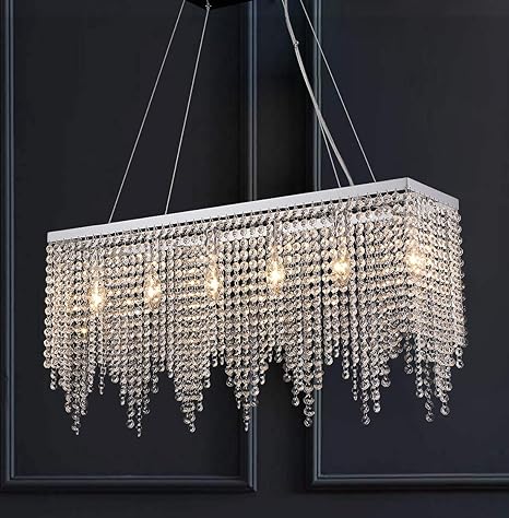 Crystal Chandelier Modern Lighting Fixture 6 Lights Linear