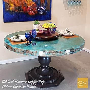 Amazon Com Round Dining Table With A Trendy Oxidized Copper Top