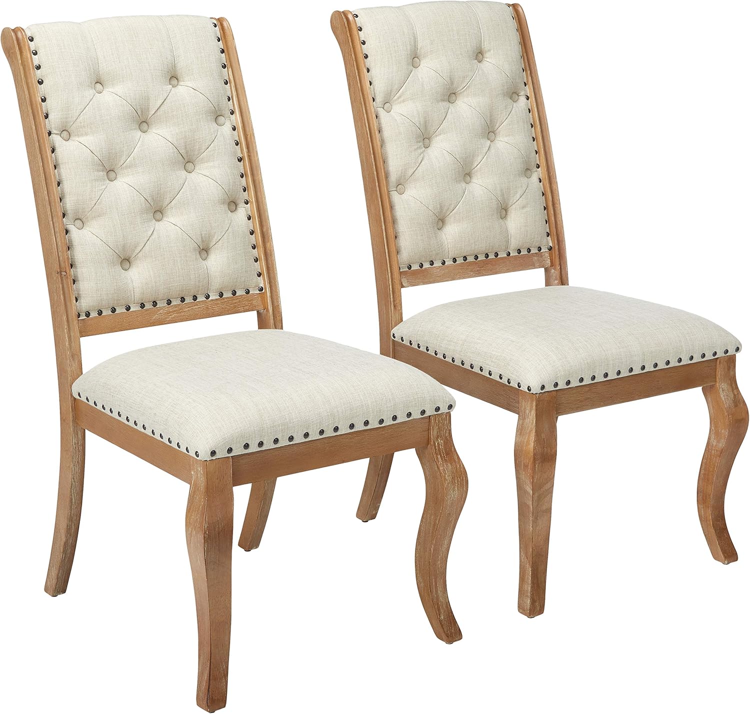 Dining Room Furniture 2pc Set Cream Color Fabric Tufted Chairs