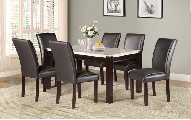 7 Pc Dark Cherry Italian Marble Top Rectangle Dining Set 2027