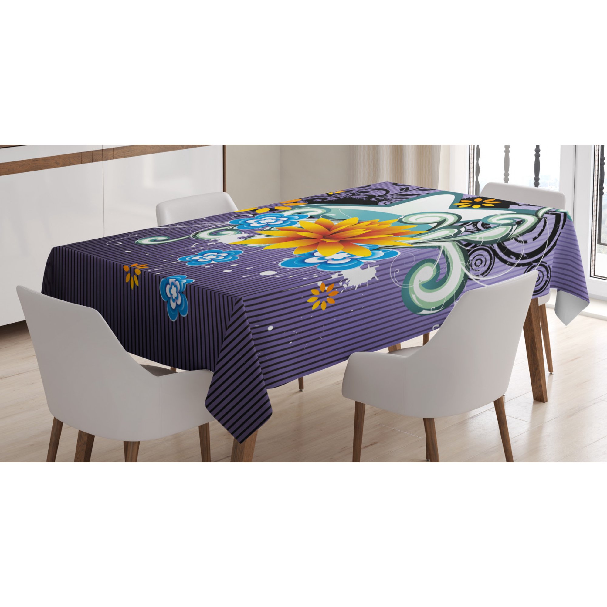 Modern Decor Tablecloth Contemporary Design With Stars Flowers