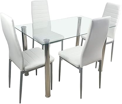 Amazon Com Adumly 5 Piece Dining Table Set White 4 Chair Glass