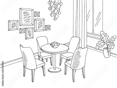 Dining Room Graphic Black White Sketch Home Interior Illustration