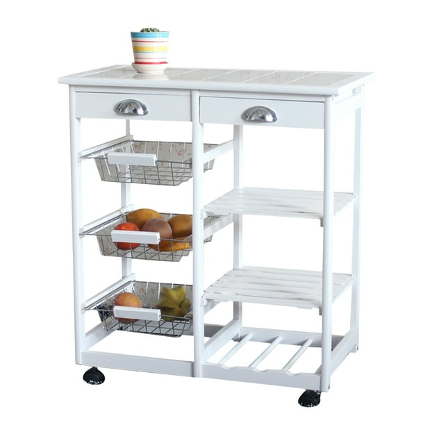 Kitchen Dining Room Cart 2 Drawer 3 Basket 3 Shelf Storage Rack