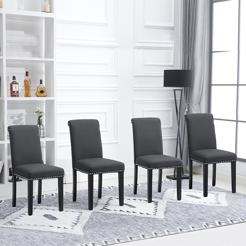 Modern 4pcs Dining Chairs Fabric Padded Tufted High Back Dining