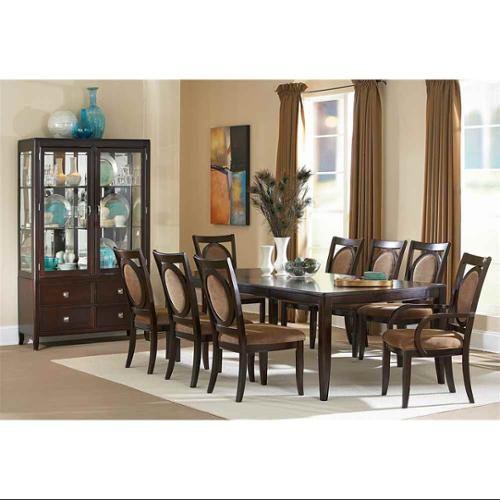Montblanc Dining Table Set W 8 Chairs Curio Cabinet In Merlot