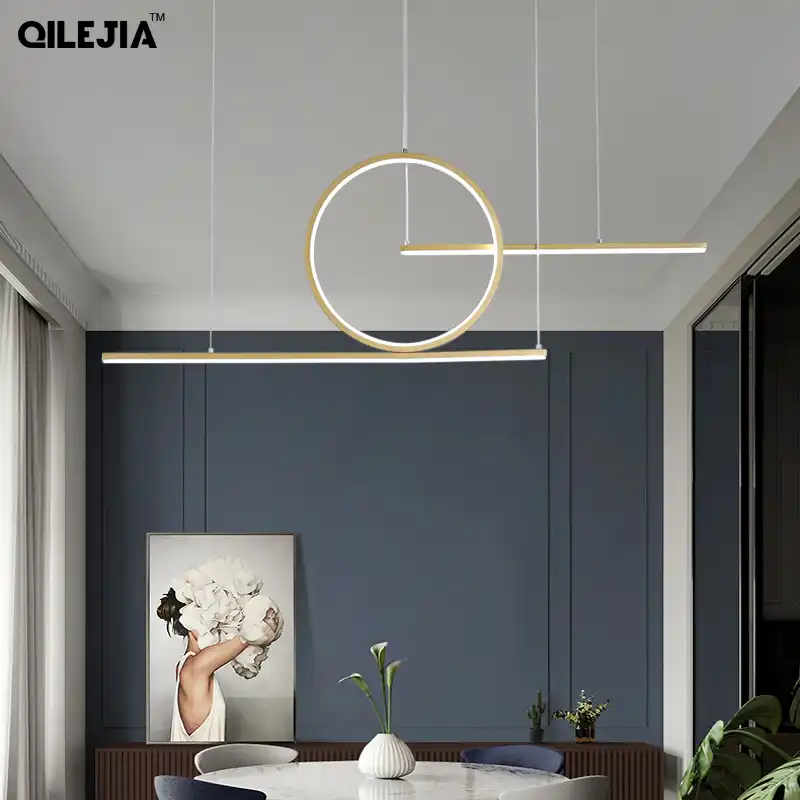 Modern Simple Strip Dining Room Lights Led Pendant Lamp Golden