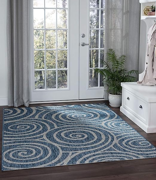 Amazon Com Tayse Varya Indigo Outdoor 9x12 Rectangle Area Rug For Living Bedroom Or Dining Room Geometric Kitchen Dining