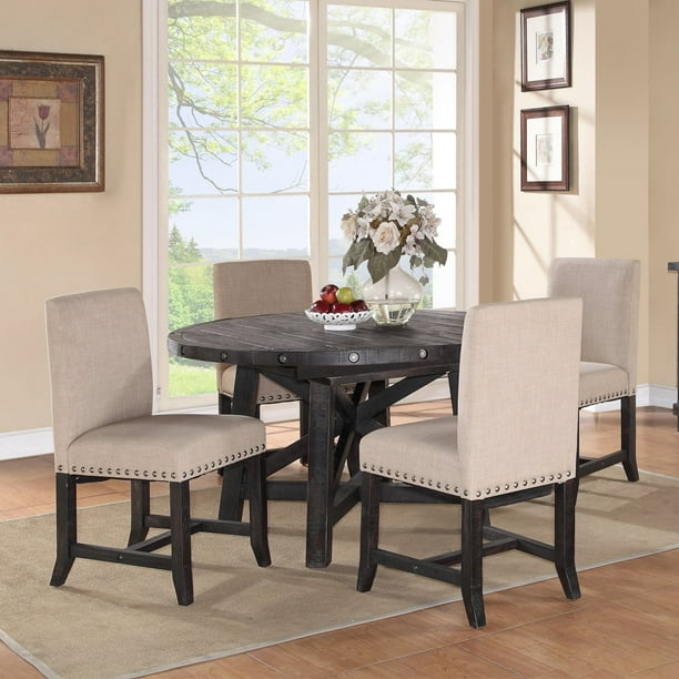 Jaxon 5 Piece Round Dining Set W Upholstered Chairs Living Spaces