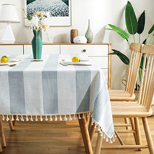 Amhoo Striped Tassel Cotton Linen Tablecloth Washable Rectanglar