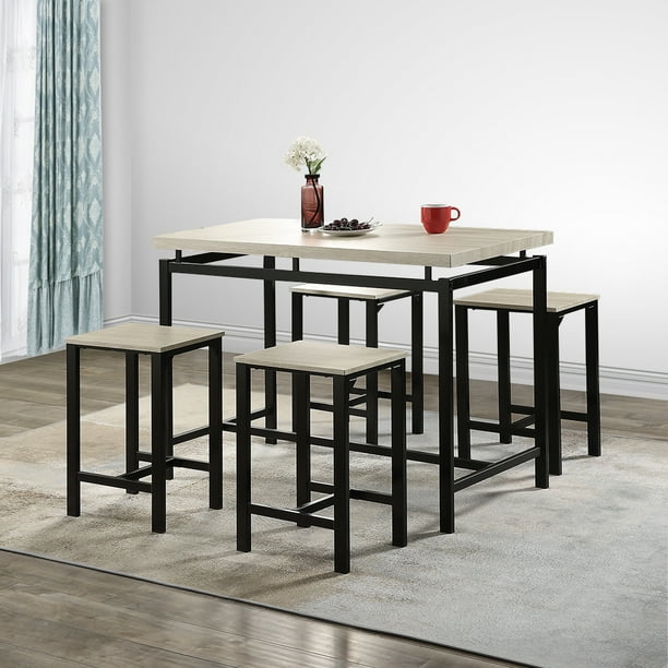 5 Piece Counter Height Table Chairs Dining Room Kitchen Nook Set