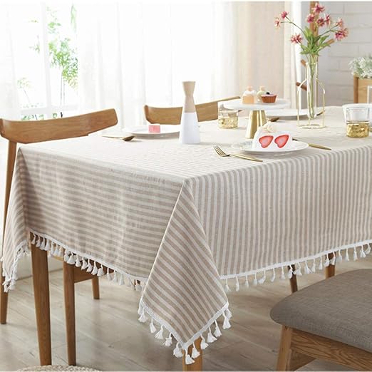 Amazon Com Fanjow Stripe Tassel Tablecloth Cotton Linen Fabric