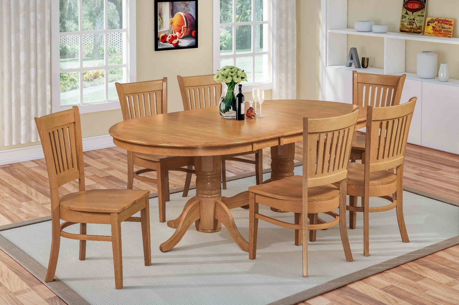 Amazon Com 9 Piece Vancouver Dining Table With One 17 Leaf And 8 Wood Seat Dinette Chairs In Oak Finish Kitchen Dining