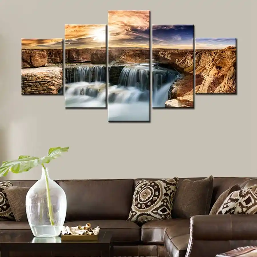 Landscape Wall Decor Sunset Waterfall Poster Canvas Painting For