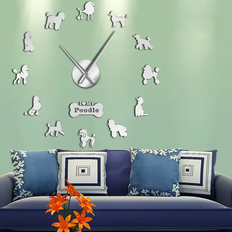 Poodle Big Hand Modern Wall Clock Pudelhund Diy Giant Wall Clock Dining Room Wall Decor Caniche Mirror Effect Diy Large Wall Art Aliexpress