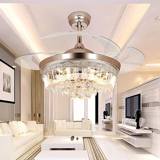 Amazon Com Bigbanban Crystal Chandelier Fan With Retractable