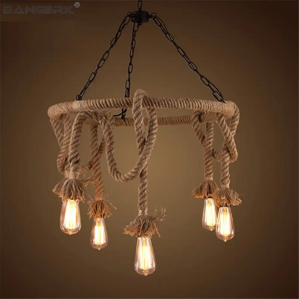 Retro Hemp Rope Pendant Edison Lights Cool Swag Lights Dining