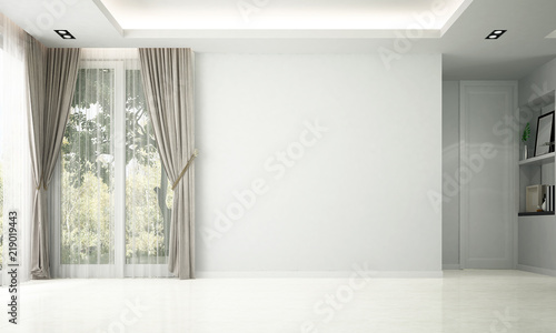 Modern Empty Living And Dining Room Interior Design And Garden
