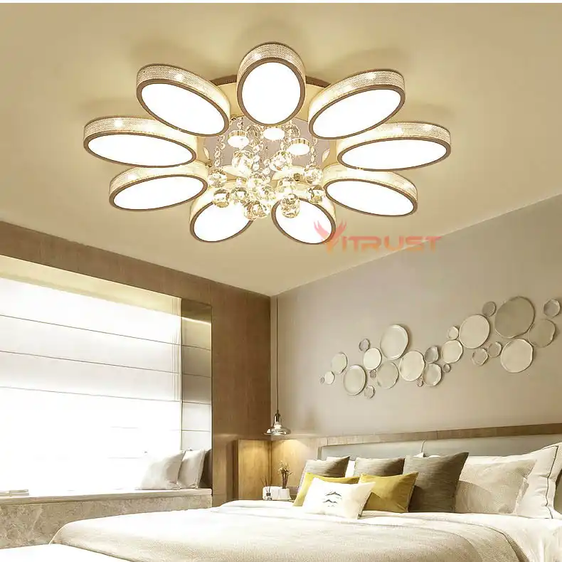Contemporary Light Fixtures Flower Leaves Crystal Flush Mount