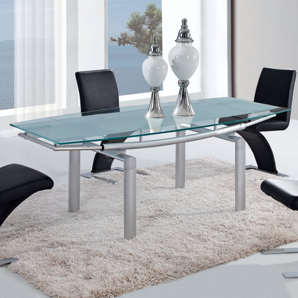 Extendable Frosted Glass Top Designer Modern Dining Room With Leaf