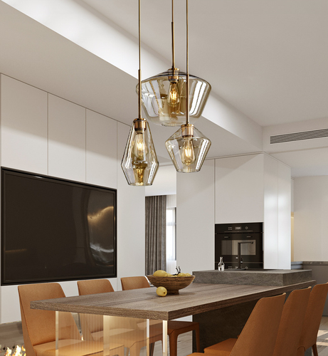 Kalri Vintage Kitchen Island Cognac Glass Chandelier Pendant