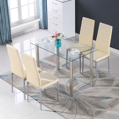5 Pcs Dining Set Glass Table And 4 Chairs Kitchen Dining
