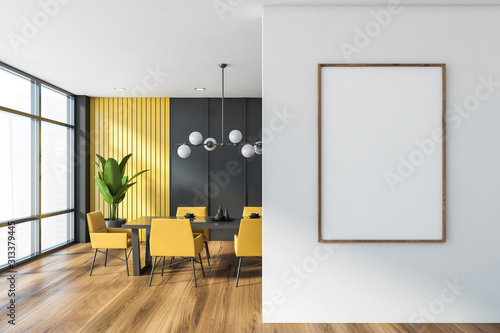 Gray And Yellow Dining Room With Poster Buy This Stock Photo And