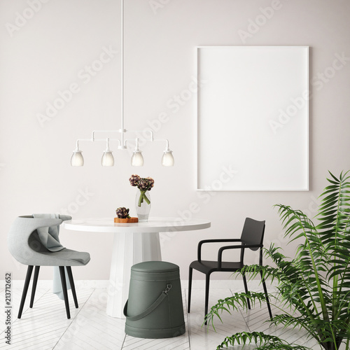 Mock Up Poster In Dining Room Hipster Background Stock Photo
