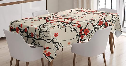 Amazon Com Ambesonne Japanese Tablecloth Asian Nature Cherry Blossom Sakura Branch Flowers Art Print Dining Room