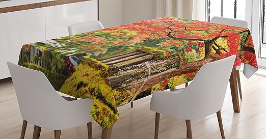 Amazon Com Ambesonne Japanese Tablecloth Autumn Scenery With Sakura Tree Cherry Blooms In Nikko Provinence Japan