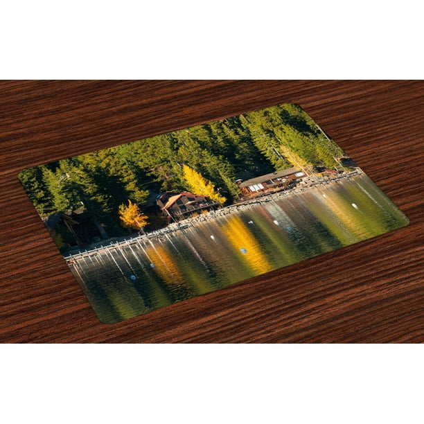 Amazon Com Ambesonne Lake Forest Place Mats Set Of 4 Lake Tahoe