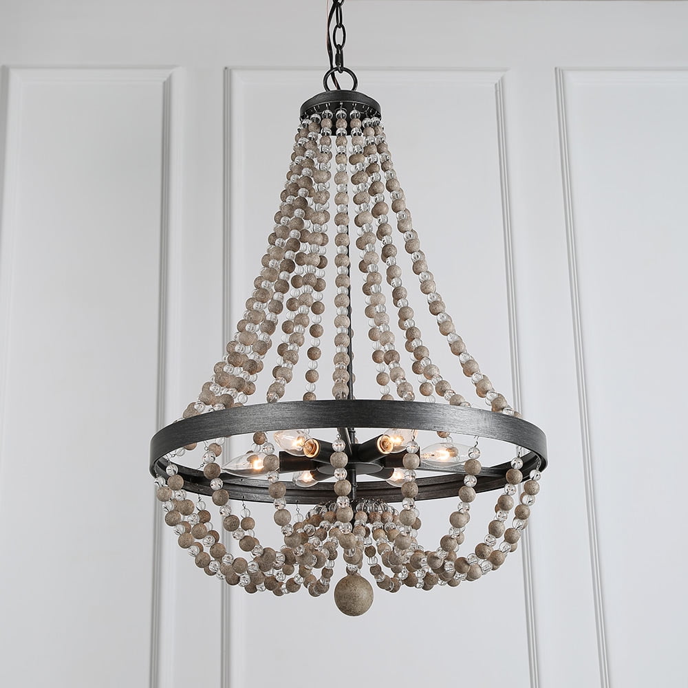 Lnc 6 Light Wood Bead Empire Chandelier For Dining Room Pendant