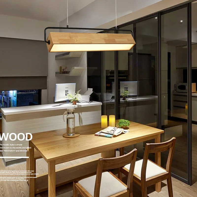 Modern Wood Pendant Light Nordic Long Bar Suspended Wooden Lamp