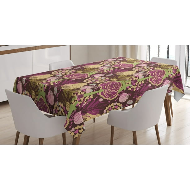 Amazon Com Ambesonne Maroon Tablecloth Detailed Ornate Flowers