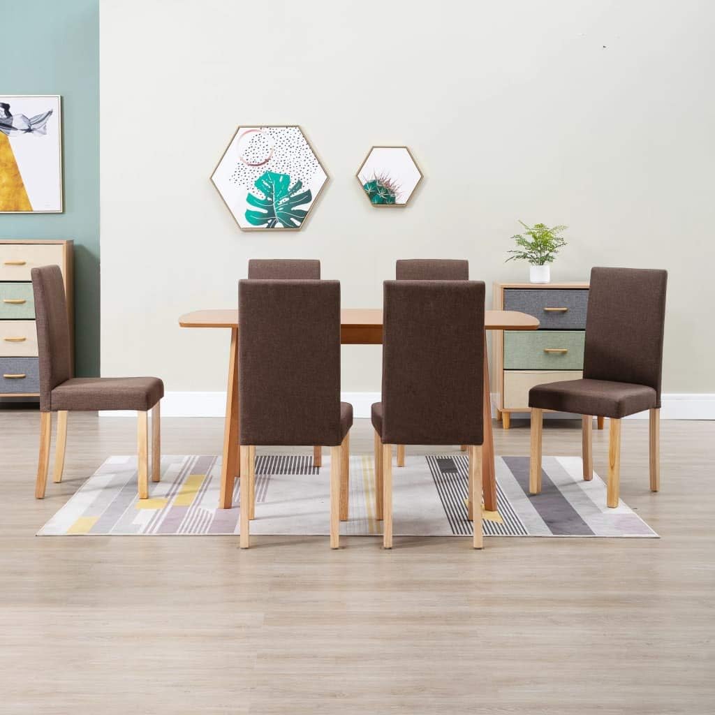 Amazon Com H Better Fabric Dining Chairs Set Of 6 With Padded Seat Modern Kitchen Dining Room Chairs Wooden Leg Brown Chairs