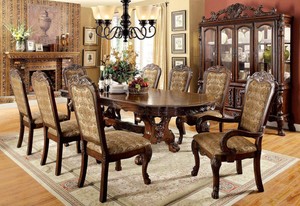 Dark Walnut Old World Classic Hand Carved Dining Room Set