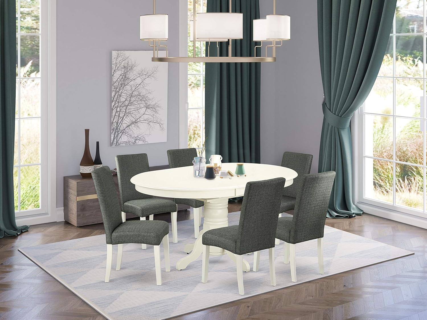 East West Furniture Avon 7 Piece Dining Table Set Oval Dinette