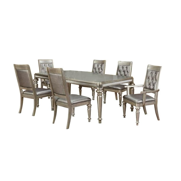 7 Piece Dining Set With Rectangular Extension Leaf Table Metallic Platinum Walmart Com Walmart Com