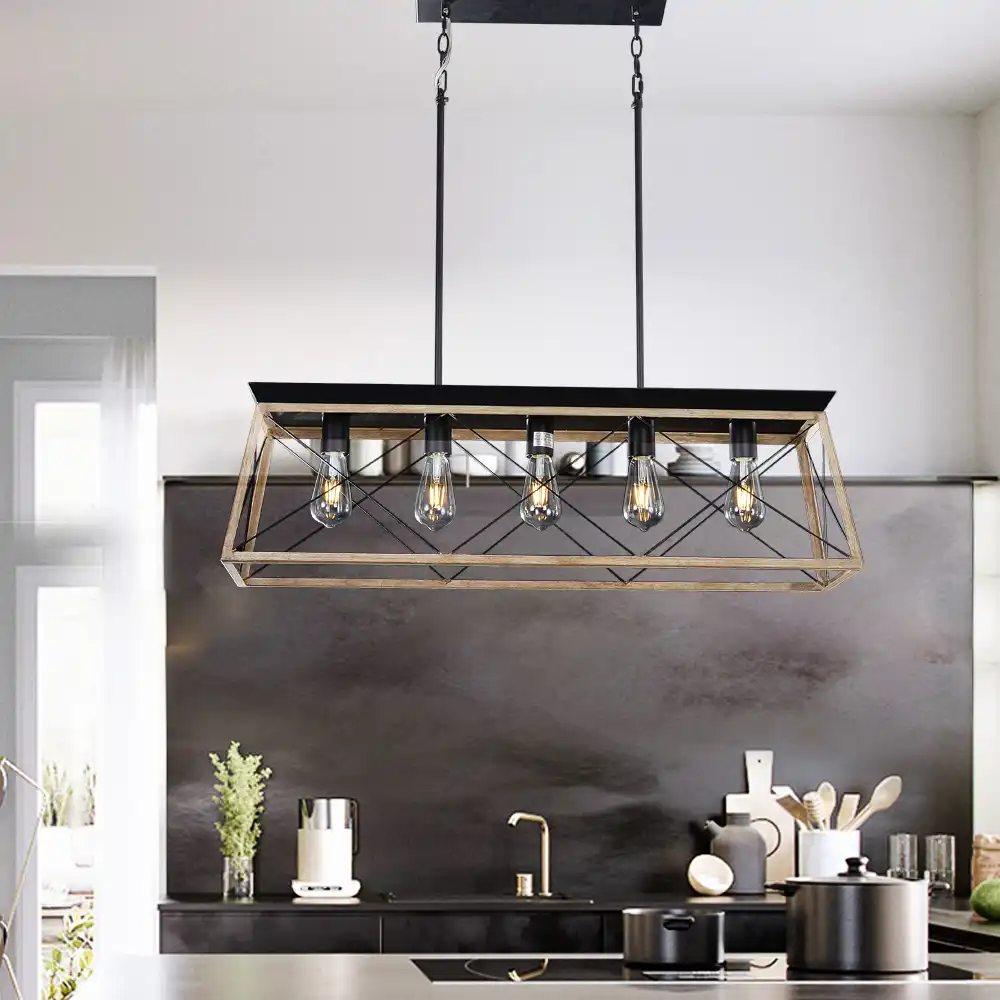 Laluz Farmhouse Kitchen Island Lighting Rectangular Chandeliers