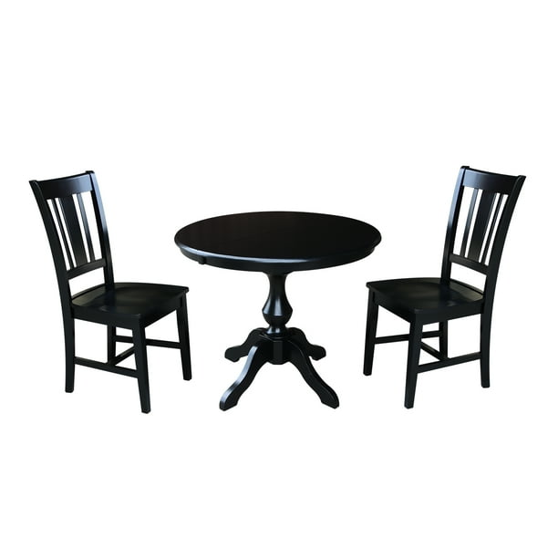 36 Round Dining Table With 12 Leaf And 2 Madrid Chairs Black