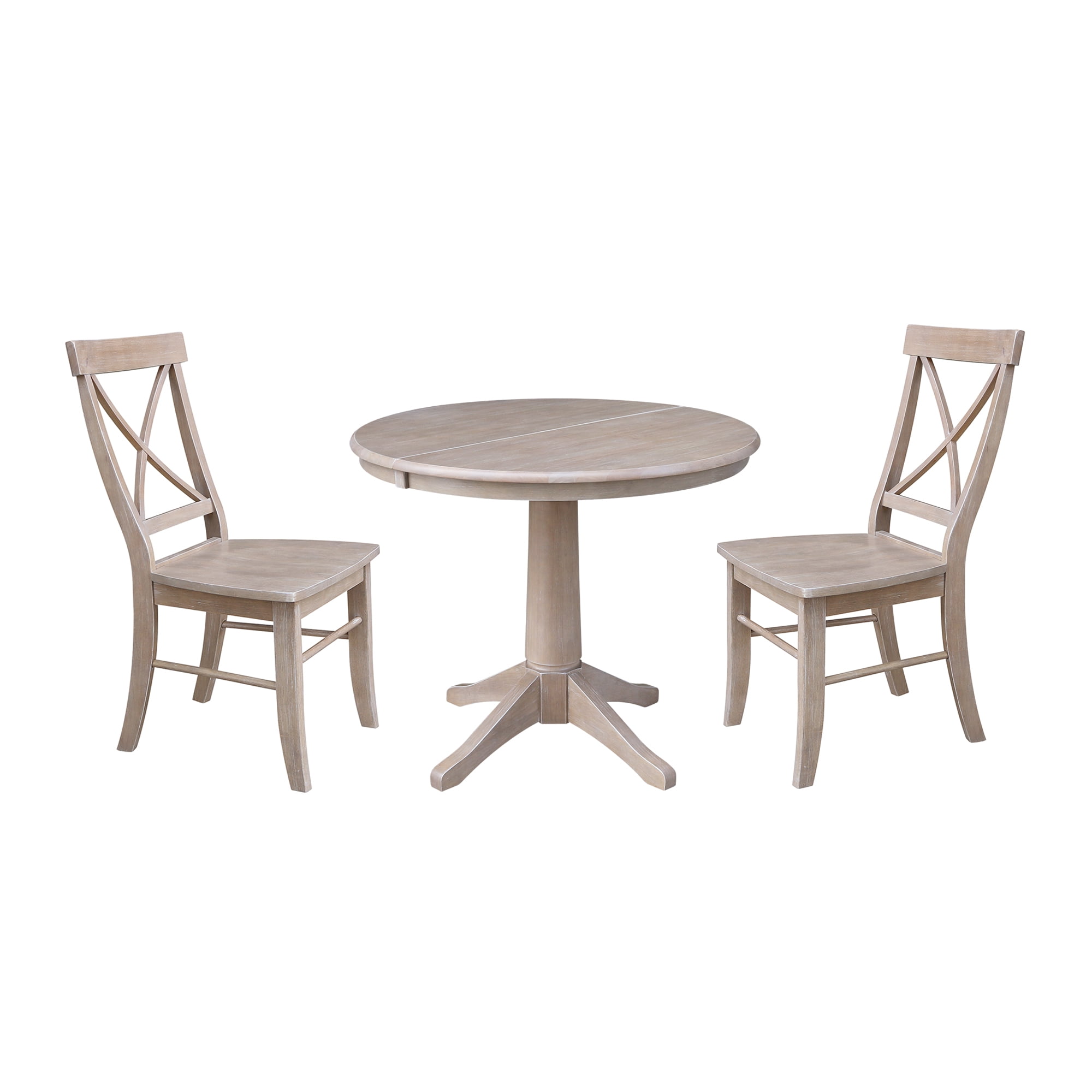36 Round Dining Table With 12 Leaf And 2 X Back Chairs Washed